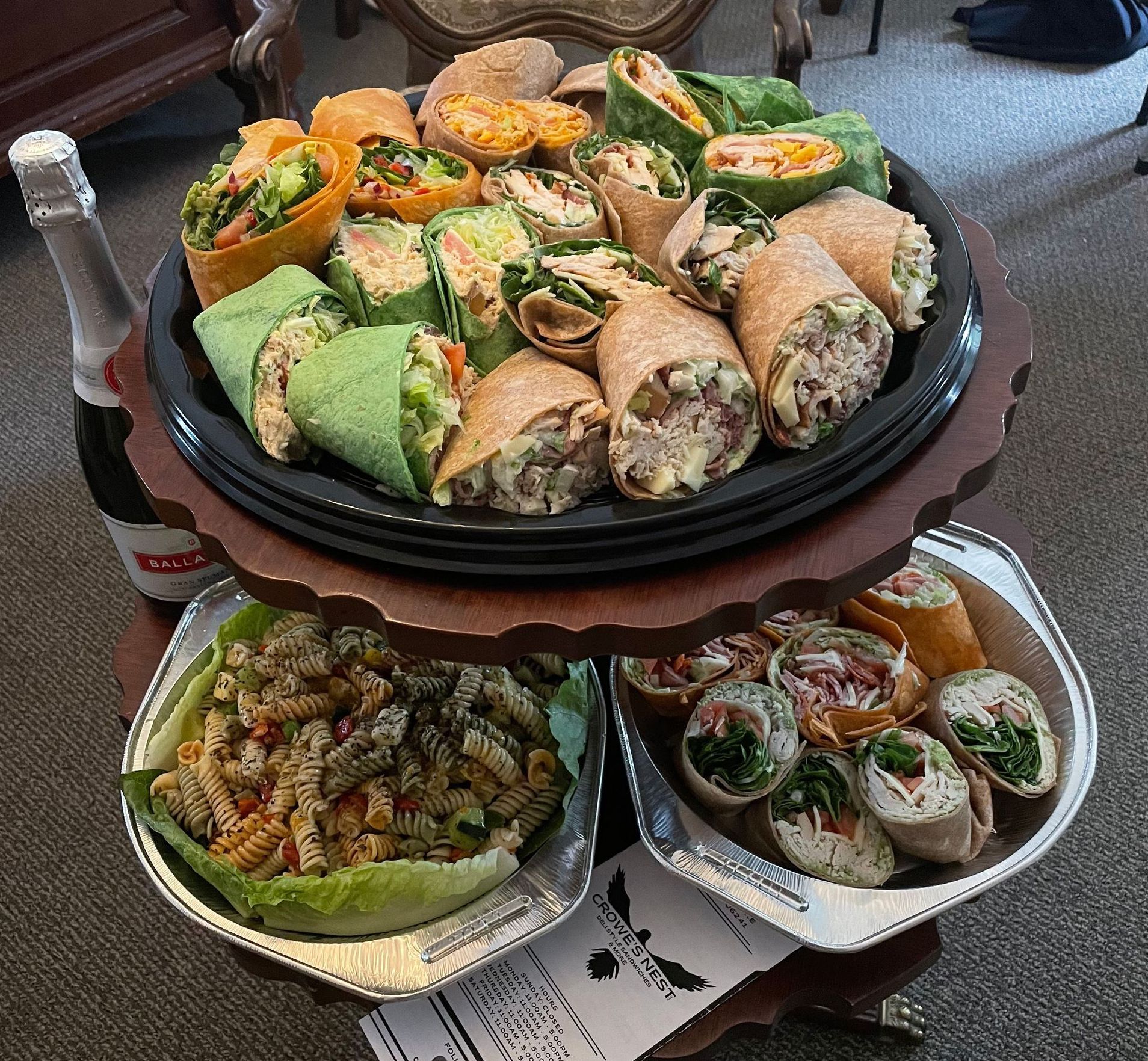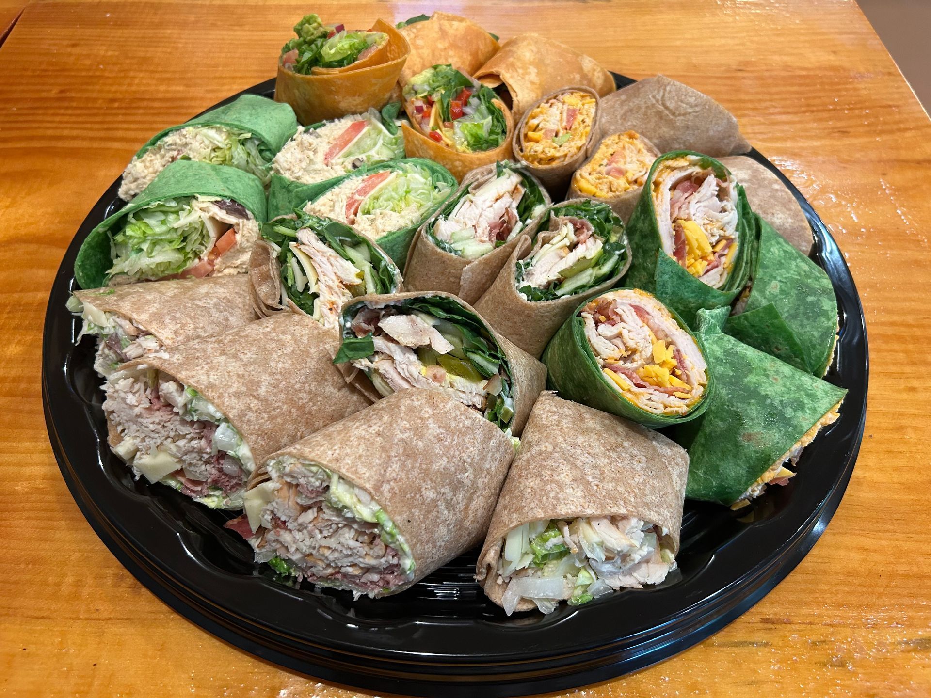 Assortment of hearty deli sandwiches, wraps & paninis served on various flavored wraps, fresh rolls & breads. All are served with lettuce, tomato, cheese & condiments